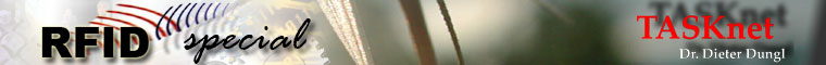 TASKnet SPEZIALTHEMA RFID, kurz für Radio Frequency Identification, steht für kleine elektronische Chips, die darin gespeicherte Information bei Bedarf an Lesegeräte verschiedenster Art abgeben. "Diese Technik ist weder besonders neu noch besonders kompliziert, hat aber die Anlagen in sich unsere Welt in ähnlicher Weise zu verändern, wie z.B. die Einführung von Mobiltelefonen." Mehr über das Thema erfahren sie in unserer kurzen Einführung RFID facts oder in den RFID FAQ. Warum Sie jetzt RFID Kompetenz brauchen? RFID Technologie ist bereits heute weiter verbreitet als Sie vielleicht annehmen. Der Einsatz ist wesentlich von Kostenüberlegungen bestimmt und die Kosten für die notwendigen Teile eines RFID Systems sinken ständig. Auch Ihre Branche wird in sehr naher Zukunft von RFID Technologie verändert werden. Sie müssen wissen was auf Sie zukommt. Als mögliche Risiken, vor allem aber, um die damit verbundenen Chancen rechtzeitig zu nutzen. Eine kleine Übersicht über aktuelle RFID Anwendungsbereiche finden Sie in unseren RFID Beispielen. RFID Impuls Coaching TASKnet bietet Ihnen Einstieg, Überblick und erste Impulse für Ihr Unternehmen in Kompaktform: schnell, top-aktuell, ohne verzerrendes Hersteller-Interesse und zu einem perfekten Preis-Leistungs-Verhältnis. Näheres unter TASKnet RFID IMPULS Coaching.